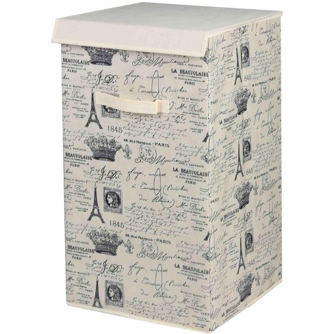 Home Basics Postcards From Paris Vintage French Rectangular Non Woven Hamper With Velcro Closure Lid Natural Target
