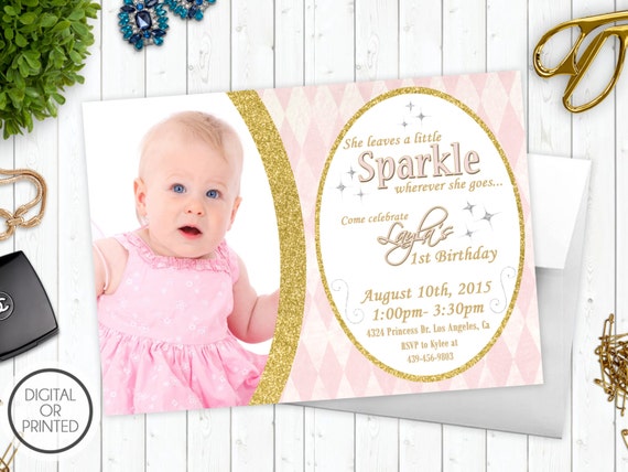 Sparkle Birthday Invitations Sparkly Birthday Invitations Pink And Gold ay Invite First Birthday Picture Sparkly Party Invitations By Great Owl Creations Catch My Party