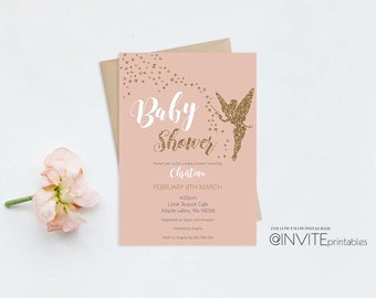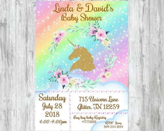 Unicorn Baby Shower Instant Downloadable Invitations Gold Etsy