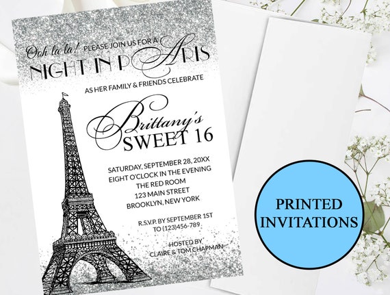 Eiffel Tower Paris Sweet 16 Silver Glitter Sparkle Invitation Etsy