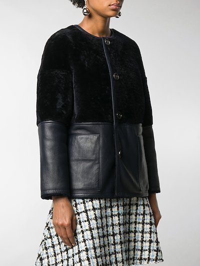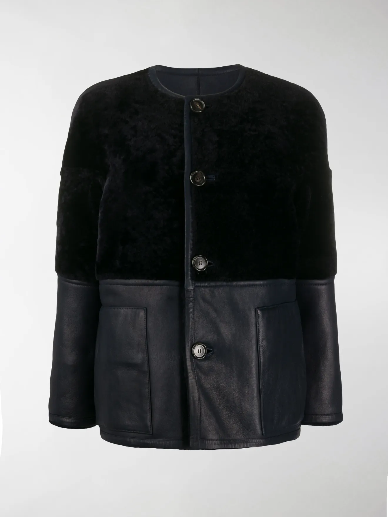 Black Oversized Shearling And Glossed Textured Leather Jacket Dries Van Noten Net A Porter