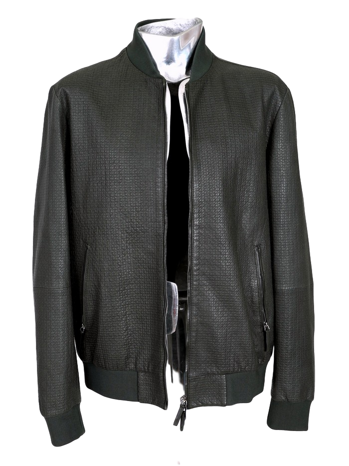 Emporio Armani Dark Green Textured Leather Jacket Rrp 1490 Eu50 Large Bomber Ebay