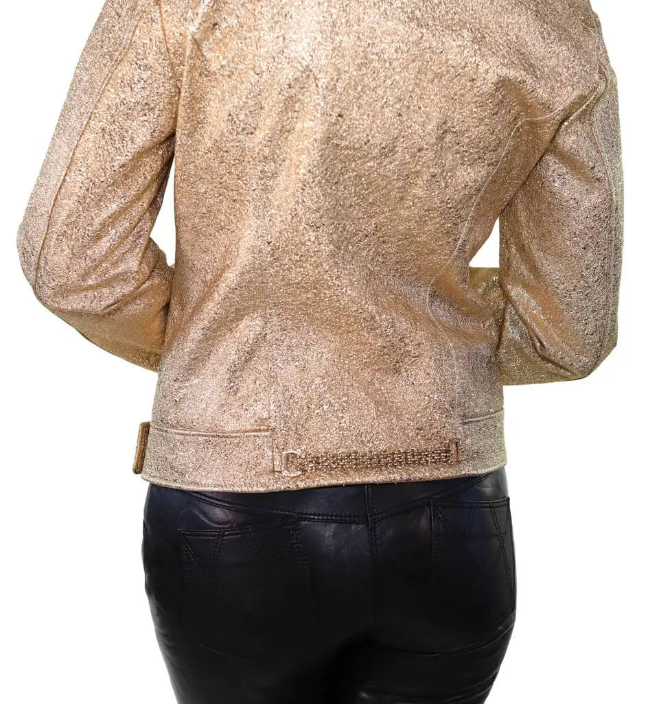 Gold Metallic Textured Leather Jacket Jackets Maker