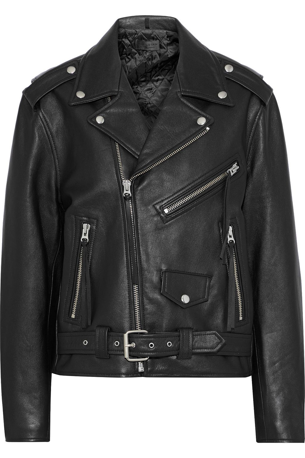 Allsaints Drury Textured Leather Biker Jacket Black At John Lewis Partners