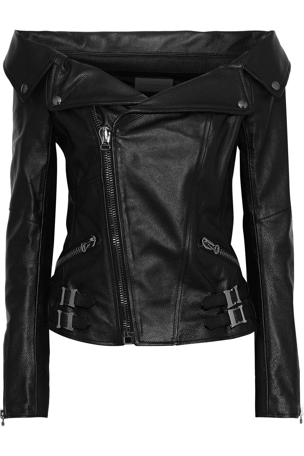 Black Off The Shoulder Textured Leather Biker Jacket Sale Up To 70 Off The Outnet Faith Connexion The Outnet