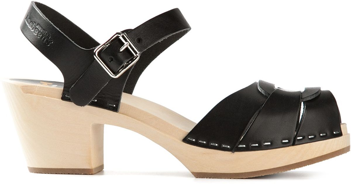 Swedish Hasbeens Wooden Sole Sandals In Black Lyst
