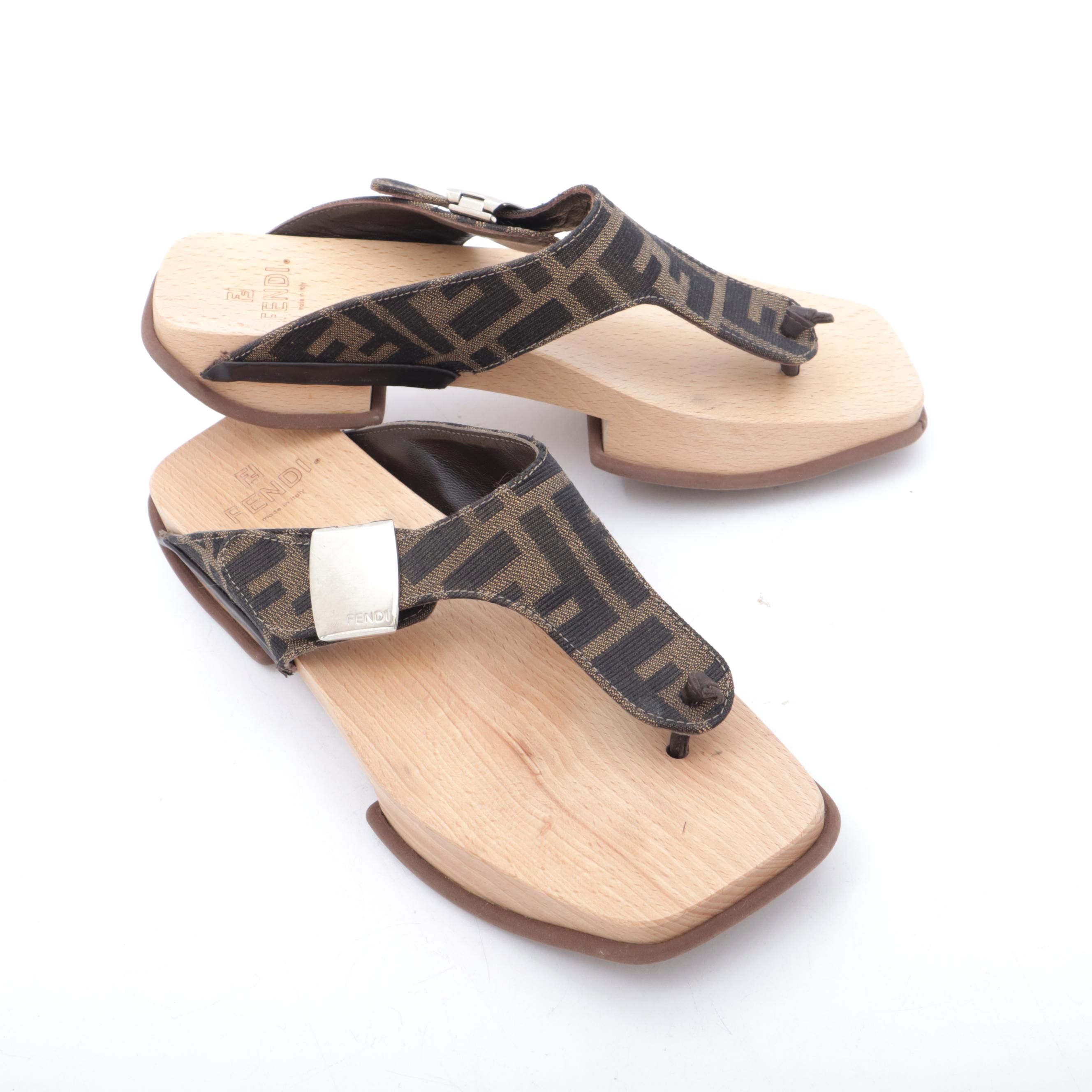Fendi Zucca Canvas Wood Soled Sandals Ebth