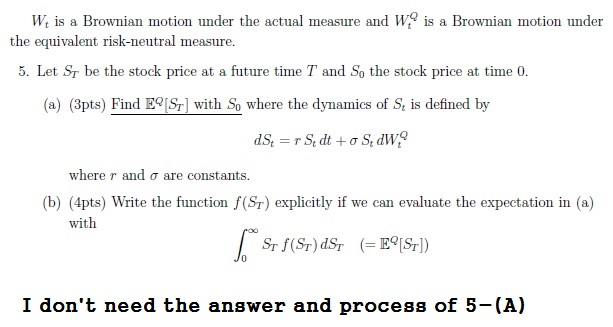 Wt Is A Brownian Motion Under The Actual Measure A Chegg Com