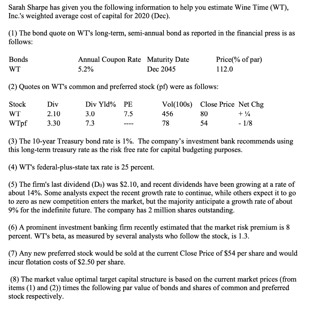 Part I Cost Of Capital Analysis Sarah Sharpe Has Chegg Com