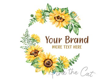 Sunflower Logo Design Logo Stamp Watercolor Logo Design Flower Logo Design Photography Logo Bespoke Logo Boutiq Graphic Design Marketing Logo Design Logo Stamp