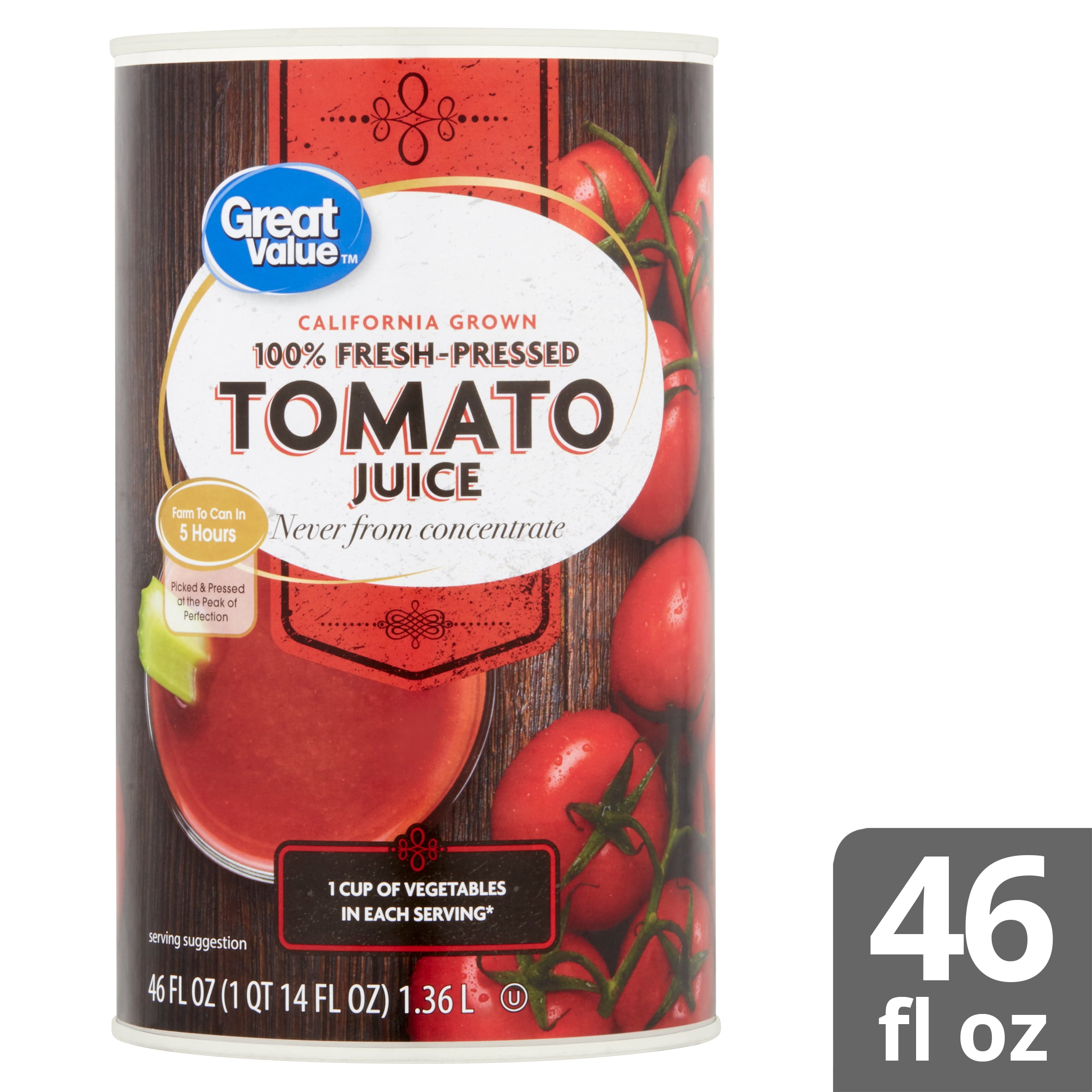 Great Value 100 Fresh Pressed Tomato Juice 46 Fl Oz Walmart Com Walmart Com