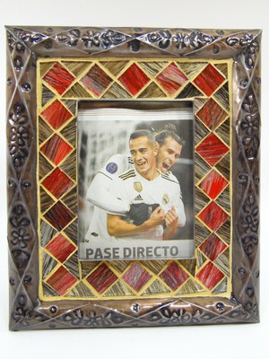 Vintage Mexican Talavera Tile Recycled Tin Frame Botes