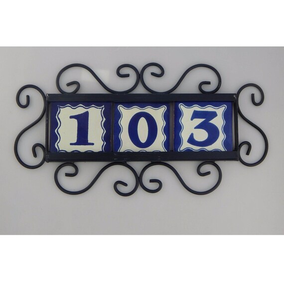 3 Mexican Talavera House Number Tiles Iron Frame Horizontal Etsy