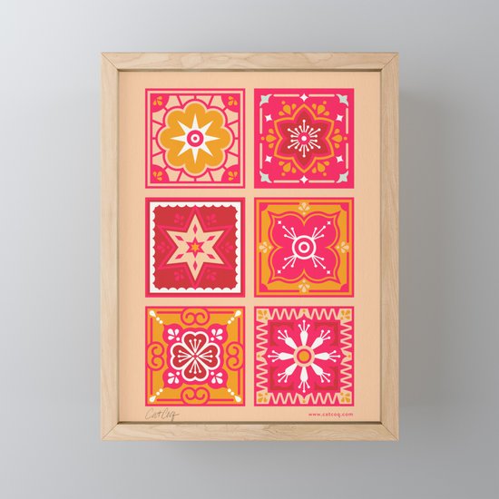 Talavera Mexican Tile Hot Pink Orange Palette Framed Mini Art Print By Catcoq Society6