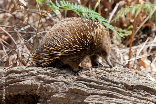A Closeup Look At A Short Beaked Echidna Tachyglossus Aculeatus Or Spiny Ant Eater As It Looks For Ants And Termites In A Rotting Log Buy This Stock Photo And Explore