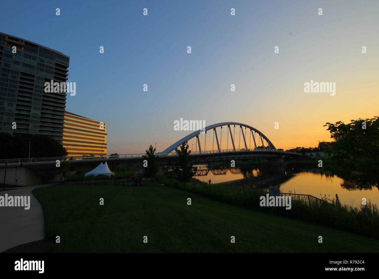The Main Street Bridge And Scioto River At Sunset In Columbus Ohio Stock Photo Alamy