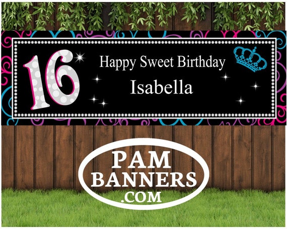 Custom Sweet 16 Banner Happy Sweet 16 Banner 16th Birthday Etsy