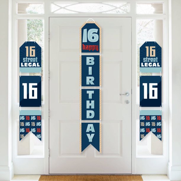 Boy 16th Birthday Hanging Vertical Paper Door Banners Sweet Sixteen Birthday Party Wall Decoration Kit Indoor Door Decor Walmart Com Walmart Com