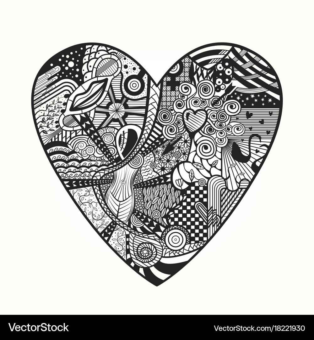 Big Black And White Zentangle Heart Stock Vector Colourbox