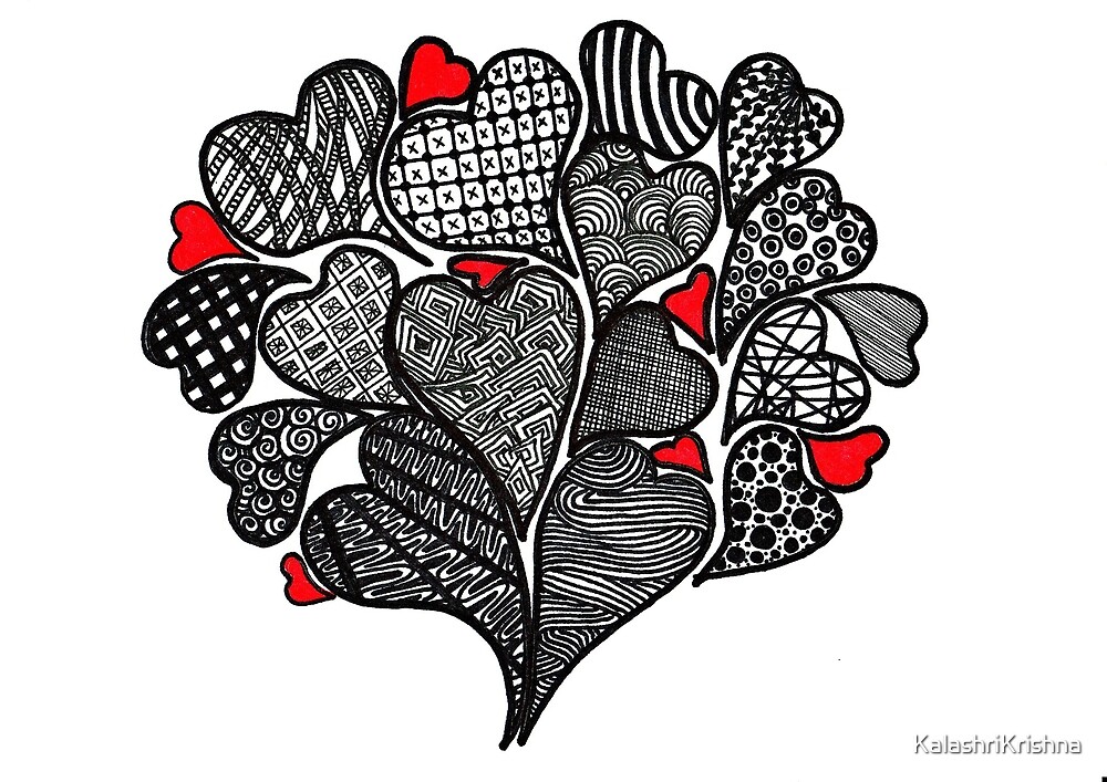Zentangle Hearts By Kalashrikrishna Redbubble