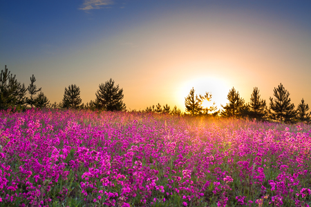 Images3m193wb0 Sunrise Pink Flowers In A Field Before Sundown