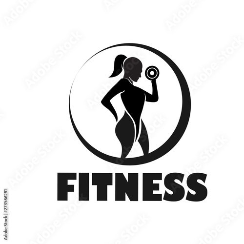 Fitness Club Logo Or Emblem With Woman Silhouette Woman Holds Royalty Free Cliparts Vectors And Stock Illustration Image