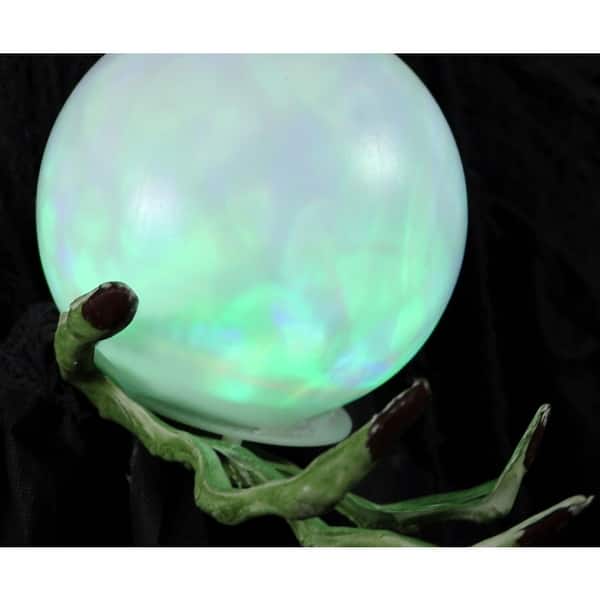 Fingerhut Haunted Hill Farm 6 1 2 Life Size Animated Wicked Witch With Multi Color Crystal Ball