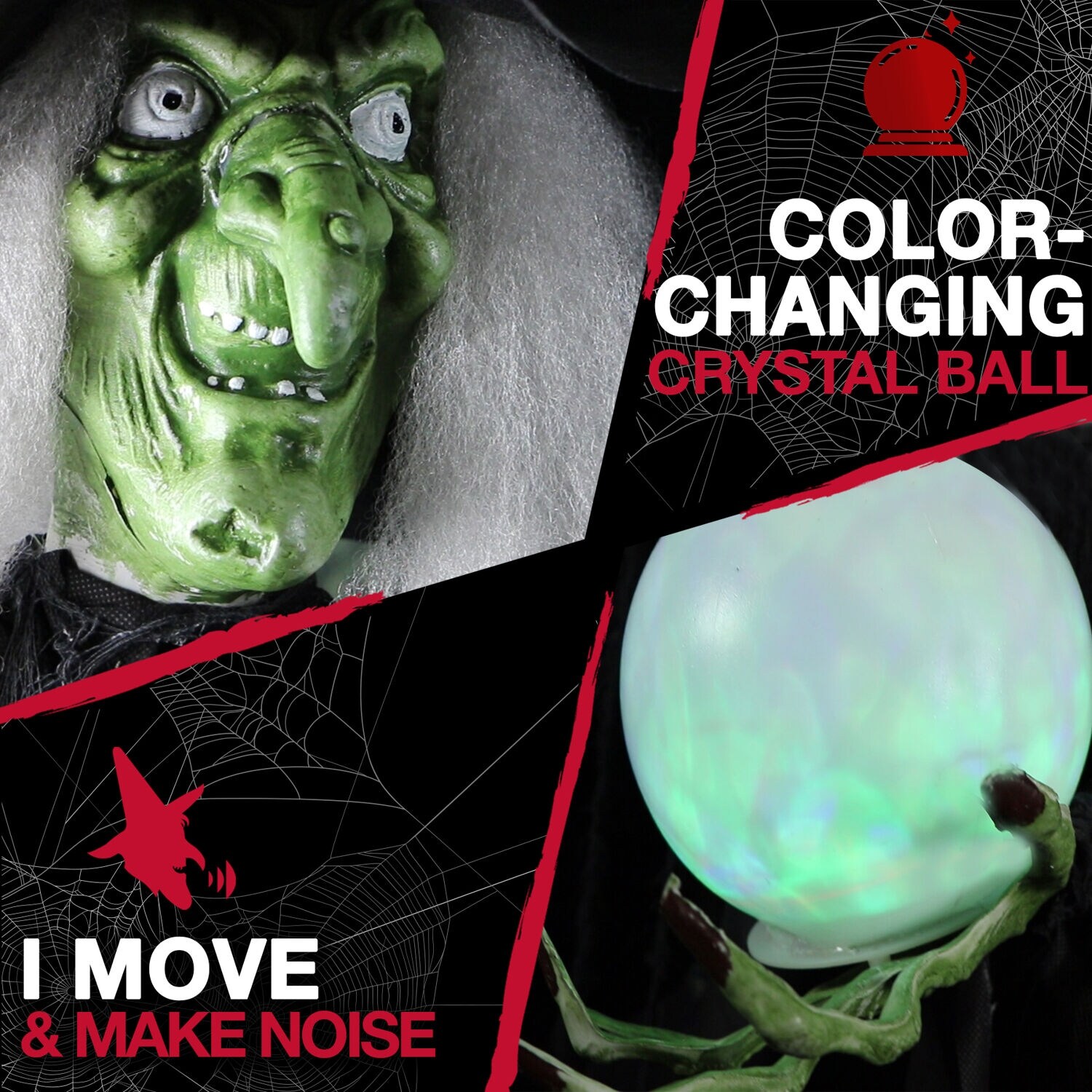 Halloween Haunters Animated Hanging Speaking Fortune Telling Wicked Witch Prop Decoration Moving Arms 3 Spell Casting Future Phrases Light Up Flashing Magic Crystal Ball And Eyes Cackles Laughs Storepaperoomates