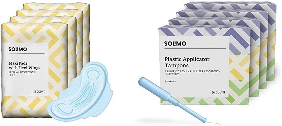 Amazon Com Amazon Brand Solimo Thick Maxi Pads With Flexi Wings For Periods Regular Absorbency Unscented Solimo Plastic Applicator Tampons Light Absorbency Multipack Light Regular Super Absorbency Health Personal Care