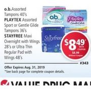 Apple Drugs O B Tampons Playtex Sport Or Gentle Glide Tampons Stayfree Maxi Overnight With Wings Or Ultra Thin R Redflagdeals Com
