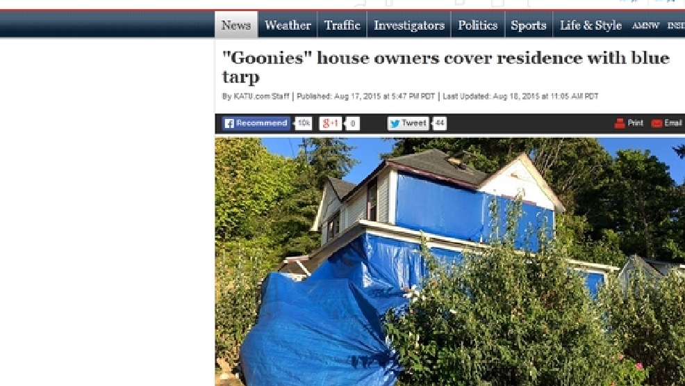Goonies House Owners Cover Residence With Blue Tarp Katu