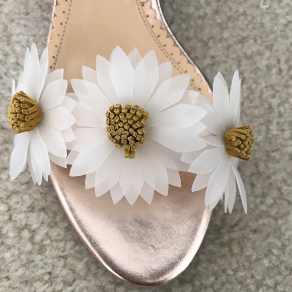 Charlotte Olympia Shoes Tara Flower Sandals Wrose Gold Tone Leather Us7 Poshmark