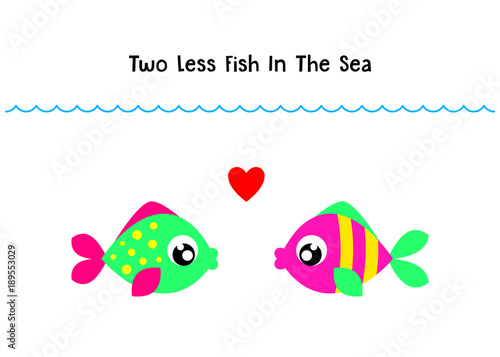 Two Less Fish In The Sea Wedding Invitation Card Vector Cute Graphic Cartoon Ocean Fish Wedding Greeting Card Illustration Valentine Card With Two Fish In The Sea Buy This Stock Vector