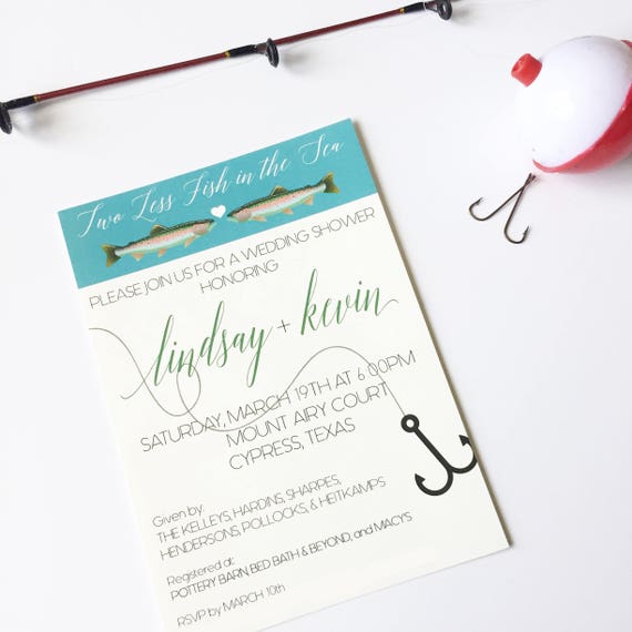 Fishing Invitation Two Less Fish In The Sea Nautical Etsy Fishing Invitations Rehearsal Dinner Themes Couples Bridal Shower