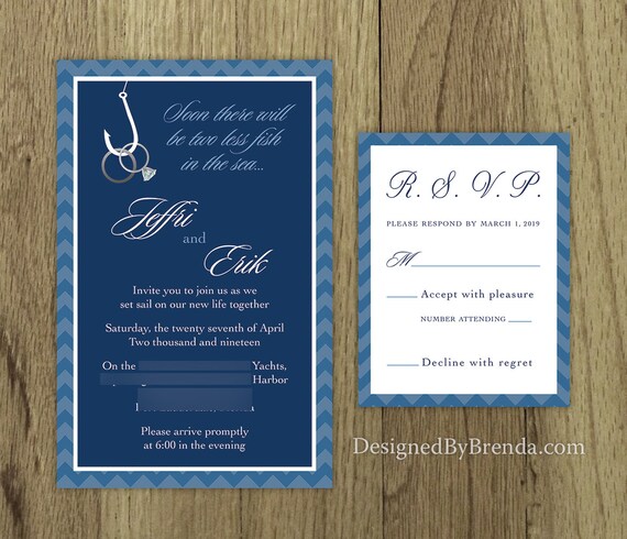 Two Less Fish In The Sea Wedding Invitation 5x7 Diy Printable Digital File With Rsvp Card Sea Wedding Wedding Invitations Invitations
