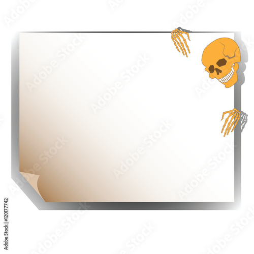 The Skeleton Of A Man Holding A Sheet Of Paper Bulletin Board Halloween Pointing At A Sign Or Scroll For Advertising Banners Wallpapers Site Vector Illustration Buy This Stock Vector And Explore