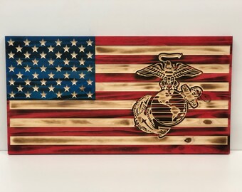 American Marine Flag Marines Wooden Flag Wooden American Etsy Wooden Flag Rustic American Flag Marine Flag