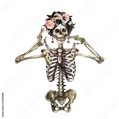 Human Skeleton Decorated With Flowers Watercolor Illustration Stock Photo Picture And Royalty Free Image Image