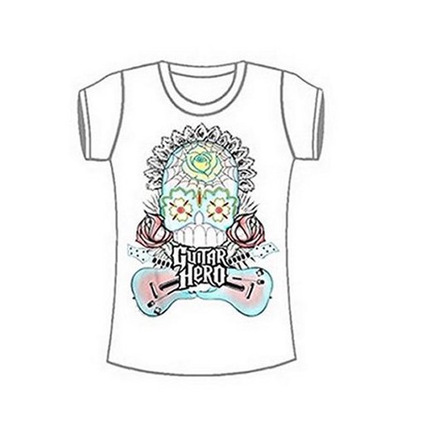 Headlines Guitar Hero Skeleton Flowers Video Game White Juniors T Shirt Walmart Com Walmart Com