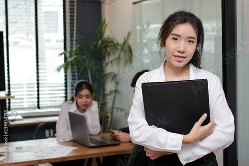 Leadership Business Woman Concept Cheerful Young Asian Businesswoman With Ring Binder Standing Against Her Colleague In Office Background Buy This Stock Photo And Explore Similar Images At Adobe Stock Adobe Stock