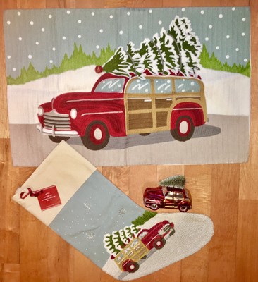 Stocking Christmas Ornament 3pc New Pottery Barn Woody Car Crewel Pillow Cover