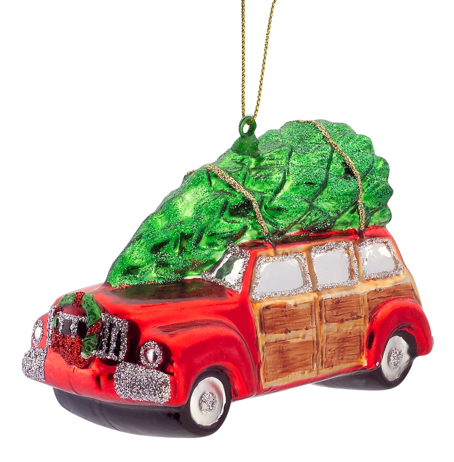 Amazon Com Melrose Vintage Woody Station Wagon Car With Tree On Roof Glass Ornament Home Kitchen