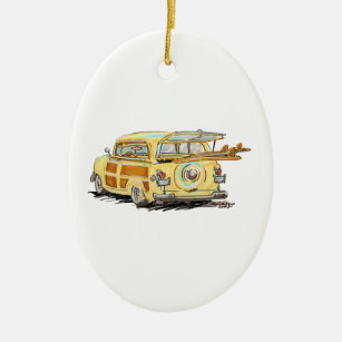 Woody Wagon Surfer Car Ornament Glass