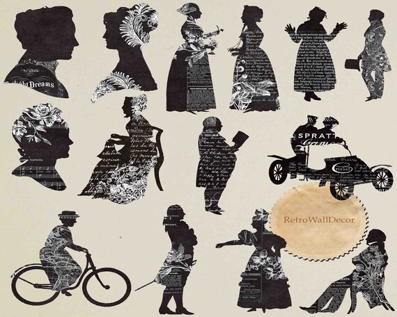 Vintage Silhouette Couple Silhouettes Clip Art Children Etsy