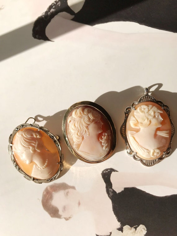 Vintage Cameo Brooch Pendants Woman Silhouette Victorian Etsy