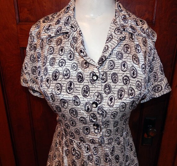 Vintage 50s Cameo Silhouette Pictures Novelty Print Cotton Day Etsy