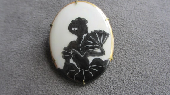 Silhouette Cameo Brooch Vintage Antique Pin Black And White Etsy