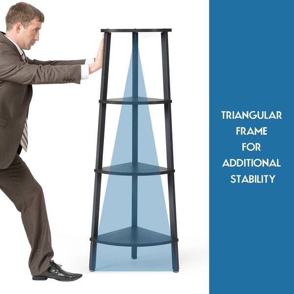 Costway 4 Tier Corner Shelf Metal Storage Rack Domestic Bookcase Display Stand Wood Grey On Sale Overstock