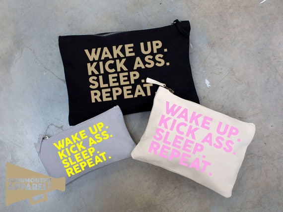 Wake Up Kick Ass Sleep Repeat Make Up Bag Pouch Make Up Case Etsy