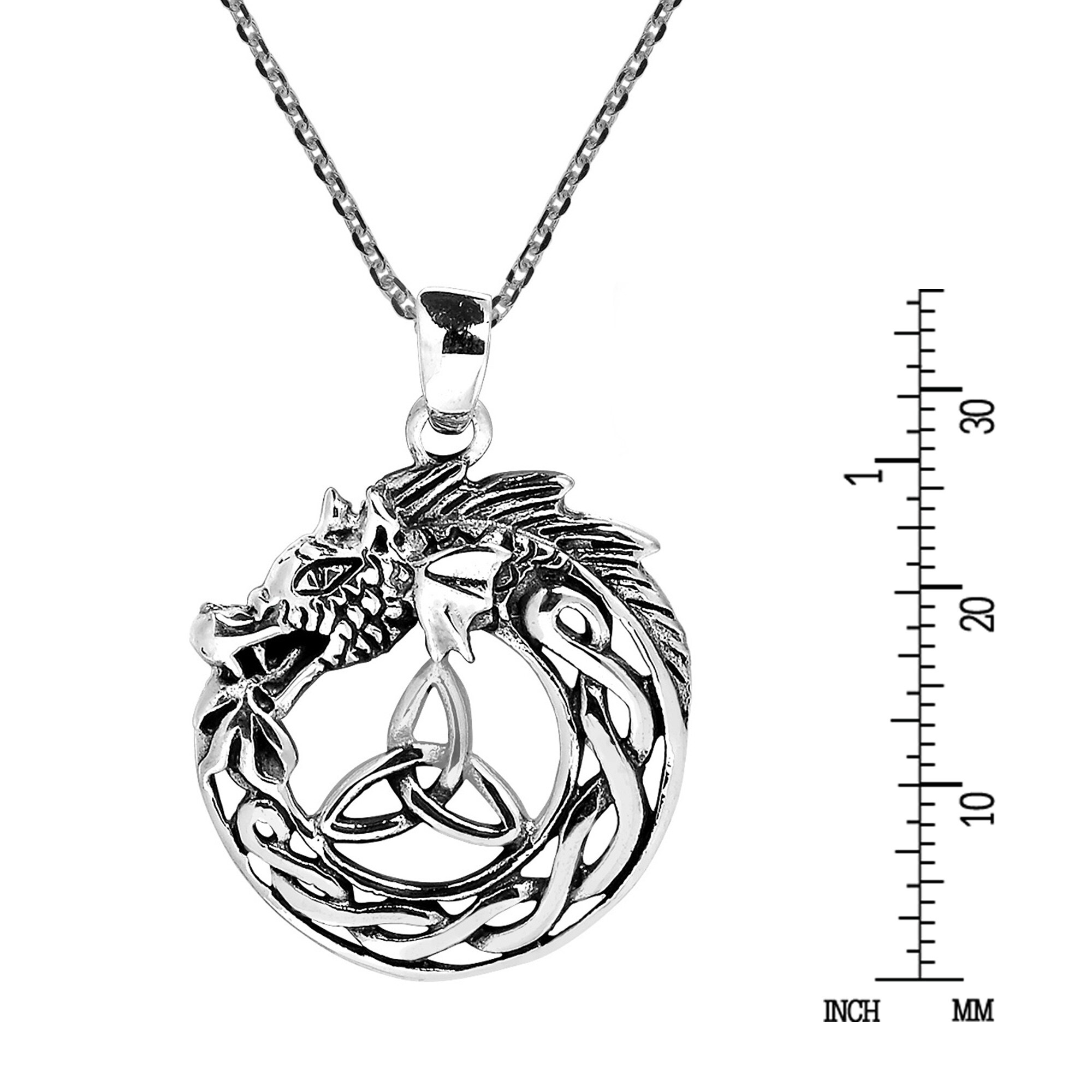 Sterling Silver Chinese Dragon Pendant Necklace Symbol Self Confidence Courage